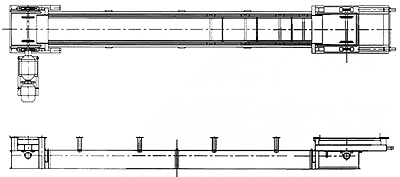 適用范圍 鑄石刮板輸送機(jī)適用于溫度在250℃以下的粉狀、粒狀、小快狀及混合物料的密閉輸送,以水平運(yùn)輸為主,也可傾斜輸送,其最大輸送傾斜角為20。,主要適用于各種原料的輸送,可適用于礦山、冶金、煤礦、化工對含水率無過高要求的物料輸送,系統(tǒng)中顆粒在300mm以下。結(jié)構(gòu)簡單,當(dāng)水平運(yùn)輸時可分為單、雙層運(yùn)輸,安裝維修方便,可多點(diǎn)進(jìn)料及出料,本機(jī)為干法輸送。不宜輸送粘性大的、要求破碎率低的易碎性物料。 主要特點(diǎn) 1.以水平運(yùn)輸為主,也可傾斜輸送 2.本機(jī)由頭節(jié)、過渡節(jié)、中間節(jié)、刮板裝置、尾節(jié)和驅(qū)動裝置組成,其最大選型長度為64.3m,從6.7m起每間隔1.1-2.1m為一檔。 3.本機(jī)中部可有多個進(jìn)出料口 主要特性參數(shù)